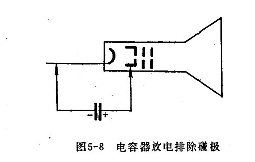 用大容量的電解電容器(如10微法以上)在直流電壓上充電(如300伏),然后在相碰之兩極放電,也可解決問題,下圖示,電容充電時注意極性,放電時極性無關。