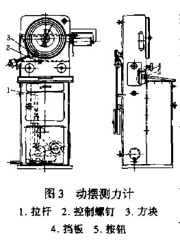 如圖3.可調整測力計橫隔板上的控制螺釘2,調整到指針能轉一周稍超過2~3格,此時要注意拉桿1上的擋板4先觸動按鈕5,然后方塊3再相繼有控制螺絲2接觸,如果不注意這種情況會使機器發生意外損壞。