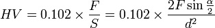 維氏硬度值的計算公式為: