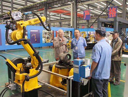 9 月 27 日,原機械工業部副部長、總工程師沈烈初, 科技司周司長,中機質協部學俊副會長在唐榮副總裁陪同下,赴濟南考察時代試金工業園、時代新紀元焊接工業園,劉維平董事長、鮑云杰總裁分別接待并介紹了機器人、試驗機、智能化焊接工廠及兩個產業發展的情況,共同商討產業發展設計。