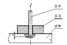 將一定形狀的鋼制壓針﹐在規定的試驗力作用下﹐壓入試樣表面﹐當壓足表面與試樣表面緊密貼合時﹐壓針端面相對壓足平面有一定的伸出長度L﹐長度L越大﹐表示邵氏硬度越低﹐反之越高,測量示意圖見下圖。